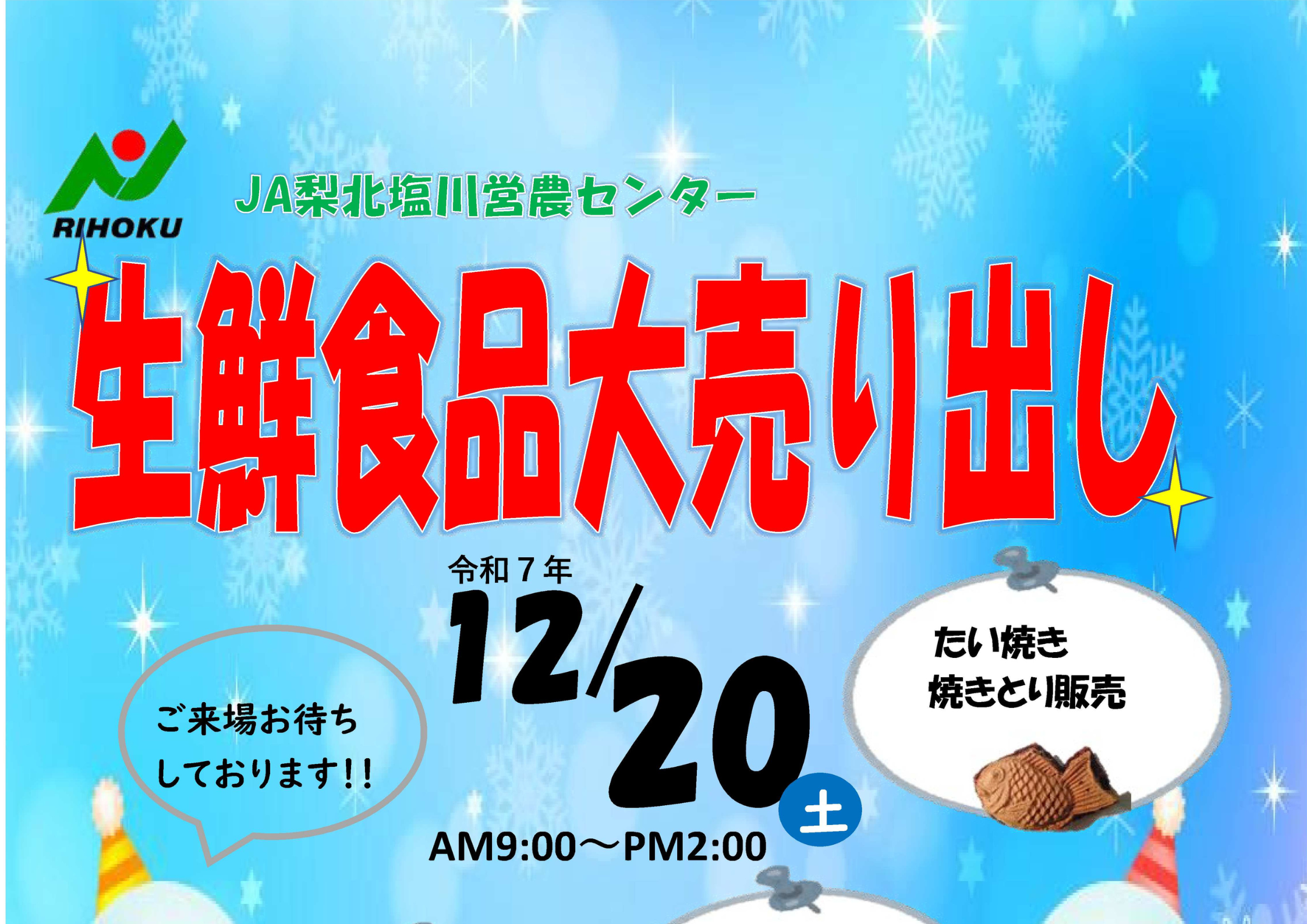 塩川営農センター生鮮食品大売出し開催!!(12/20)(終了しました)