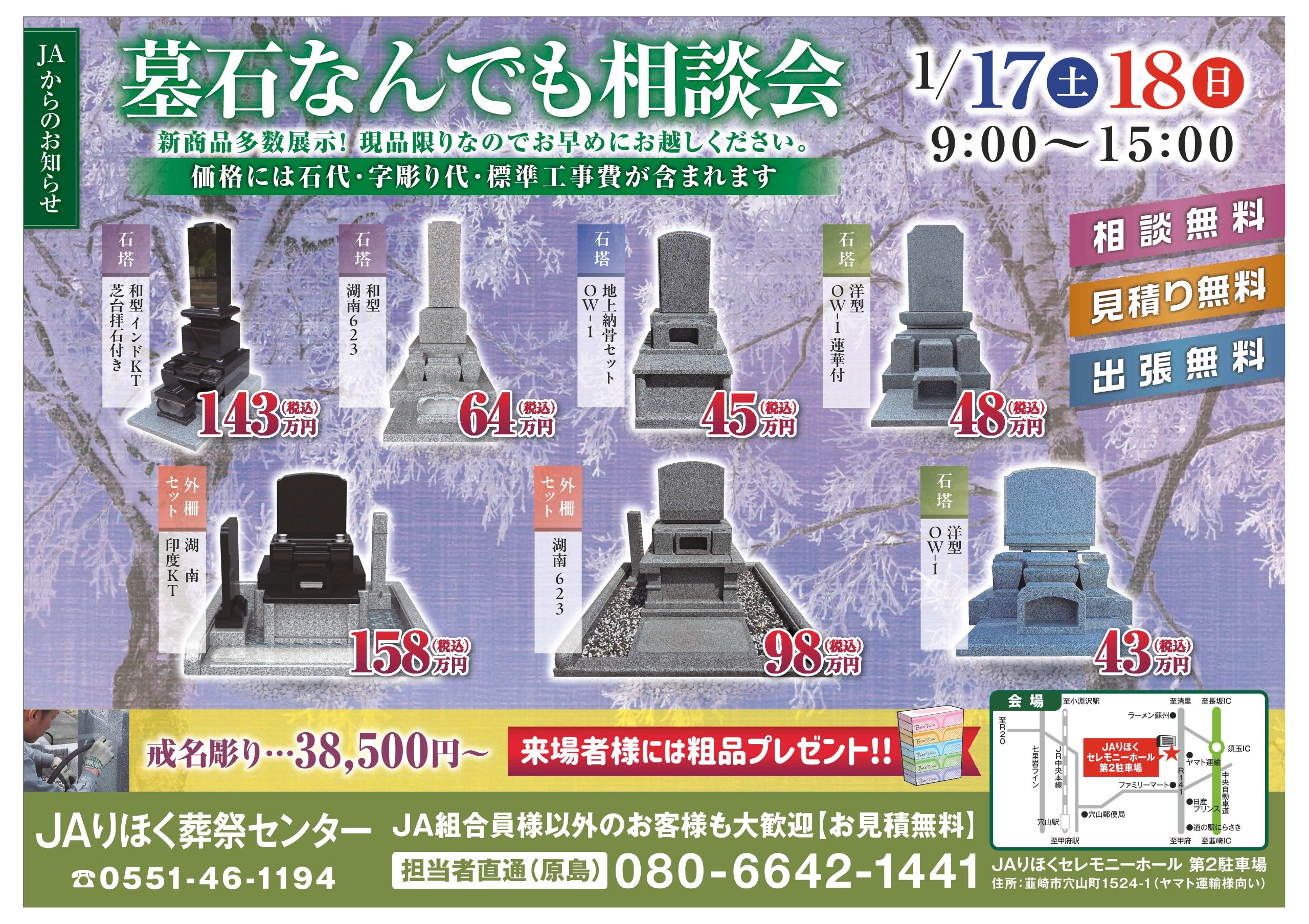 墓石なんでも相談会開催のお知らせ(1/17・18)