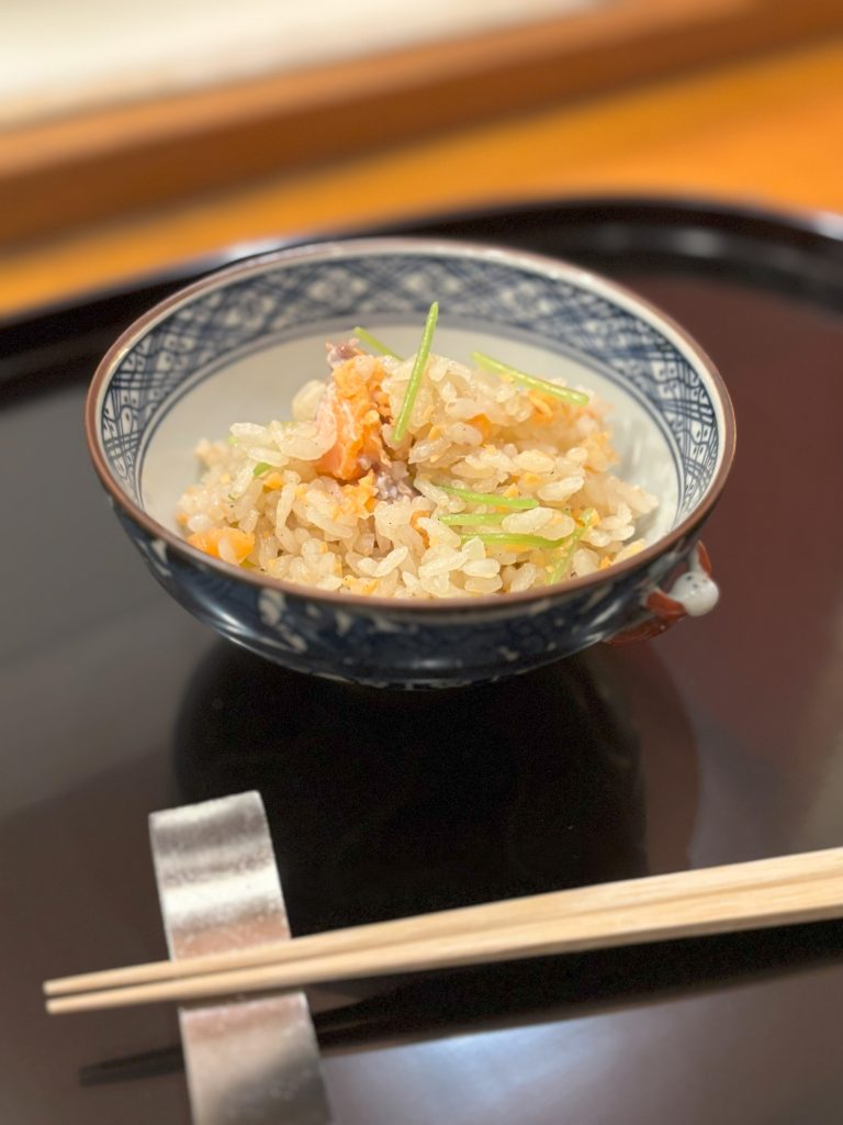 梨北米を使った炊き込みご飯は、出汁の旨みがしっかりと染み渡り、ふっくら炊き上げた自慢の一品です。野菜は地元の道の駅や直売所から新鮮なものを選び、山梨県産のブランド魚「富士の介」も積極的に取り入れています。